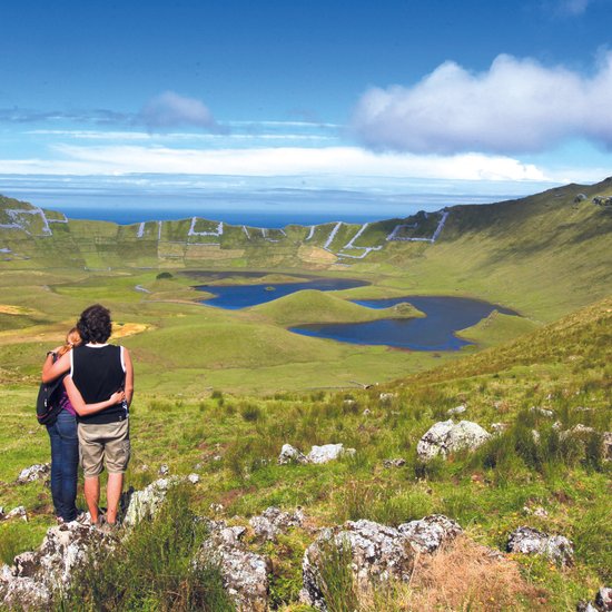 Die Insel Flores besticht nicht nur durch ihre unberührte Natur, sondern auch durch eine einmalige Seenlandschaft namens ‚Sete Lagoas‘. Der Übersetzung nach handelt es sich um sieben Seen die sich über den Krater und dessen Hochebene erstrecken: Lagoa Negra (dunkler See), Lagoa Branca (weißer See), Lagoa Comprida (langer See), Lagoa Rasa (flacher See), Lagoa da Lomba (See der Ortschaft Lomba), Lagoa Funda (tiefer See) und Lagoa Seca (trockener See). Ein ganz besonderes Highlight sind dabei die Seen Rasa und Funda, welche sich zwar nebeneinander, aber auf unterschiedlichen Höhen befinden und Teil des dortigen Naturreservates sind.