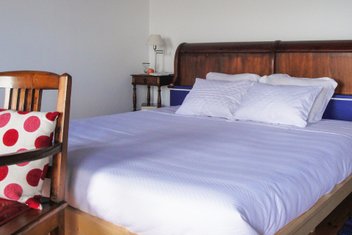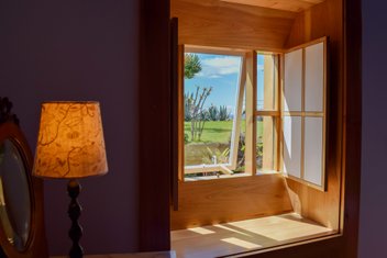 Die 8 hellen und stilgerecht eingerichteten Zimmer haben alle Bad/WC, Klimaanlage, TV und freien Blick aufs Meer. Die beiden Apartments haben zusätzlich einen separaten Schlafraum und im Wohnbereich eine Kitchenette. Für kühlere Tage gibt es einen kleinen Pelletofen. Im Haupthaus befindet sich der Empfangsraum mit Spieltischen und einer Ausstellung diverser Werke. Ein großzügiger Leseraum öffnet sich nach Süden zur Veranda und der Garten bietet genügend Platz um sich zurückzuziehen und die Aussicht zu genießen.