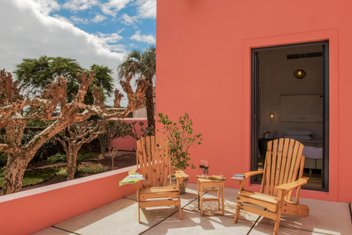 Zu Ihrer Wahl stehen 15 Gästezimmer. 8 Zimmer — darunter je ein 3- und 4-Bett-Zimmer sowie eine Suite mit Terrasse — liegen im historischen Landhaus und sind mit Kingsize-Betten, Duschbad/WC mit Regendusche, Klimaanlage/Heizung, Flachbild-Kabel-TV, WLAN, Kaffee-/Teezubereiter und Holz-/Parkettboden ausgestattet. Die Einrichtung besticht mit einem gekonnten Mix aus Mobiliar im Vintage-Stil und Antiquitäten.