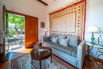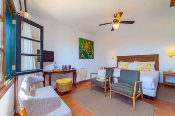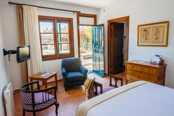 Das Landhaus wurde liebevoll zu einem gemütlichen Hotel Rural umgebaut. Die 8 Gästezimmer sind mit antiken Möbeln ausgestattet und alle haben eine Dusche (inkl. Föhn), Heizung, kostenloses WLAN und Sat-TV. Die Suiten verfügen zusätzlich über einen abgetrennten Wohnbereich. In den Stallungen der alten Finca befindet sich ein ausgezeichnetes Á-la-Carte-Restaurant, das auch für andere Gäste geöffnet ist. Das Feinschmeckerrestaurant verarbeitet frische Zutaten aus der Region - zubereitet mit einem kreativen Touch. Öffnungszeiten: Dienstag bis Samstag von 13:30 bis 22:30 Uhr. Die El Patio Gastro Bar ist täglich von 12:00 bis 14:00 Uhr geöffnet und lädt mit einer gemütlichen Außenterrasse und schmackhaften Aperitifs begleitet von ausgewählten Weinen zum Verweilen ein.