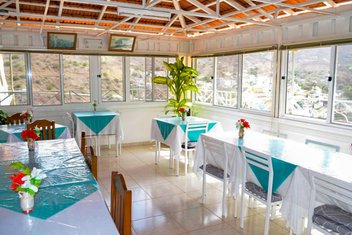Diese kleine, familiengeführte Pension blickt auf eine über 20-jährige Geschichte zurück und lebt vor allem von ihrer Aussicht sowie der Herzlichkeit ihrer Gastgeber. Das Haus thront in Hanglage wenige Gehminuten oberhalb des Ortszentrums, wobei eine steile Treppe zum Eingang führt. Um so schöner ist der Blick über das Mini-Inselhauptstädtchen und die umgebende Berglandschaft, die zu schönen Wanderungen einlädt.