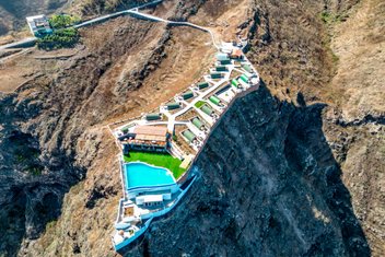 Die kleine Anlage wurde terrassenförmig aufgebaut. Auf das Haupthaus verteilen sich die Rezeption, ein Restaurant mit Panoramaterrasse und eine Bar mit Outdoor-Lounge. Direkt unterhalb laden ein nicht minder aussichtsreicher, 150 m2 großer Infinity-Pool mit Liegestühlen sowie eine Sauna für bis zu 4 Personen zum Entspannen ein.
