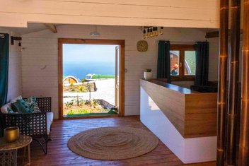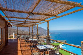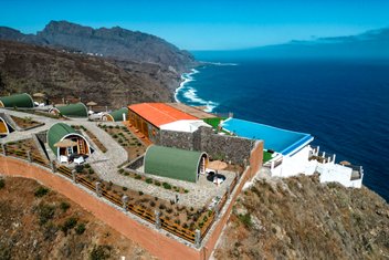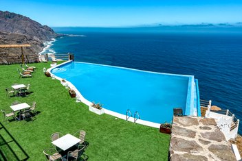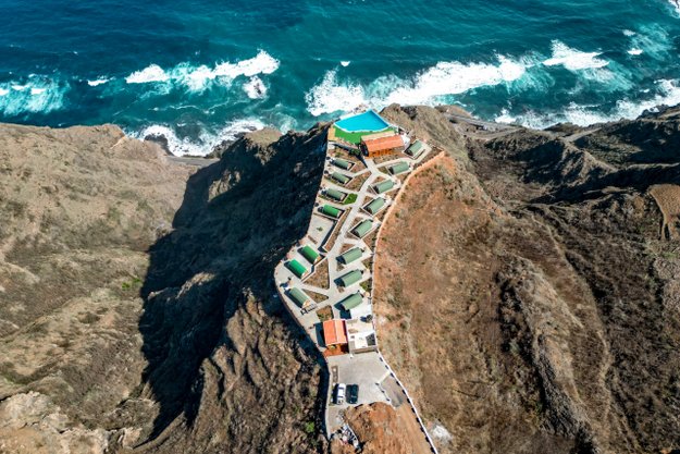 Dieses im Frühjahr 2023 eröffnete, familiengeführte Hotel thront spektakulär auf einem Felsplateau über der Nordküste mit unvergleichlichem Meerespanorama. Rund 2,5 km trennen Sie vom Küstendorf Sinagoga mit seinem Naturschwimmbecken im Osten, knapp 5 km von der nächstgrößeren Ortschaft Ribeira Grande im Westen. Die Lage ist einerseits überragend, andererseits müssen sich die Taxis und ,Collectivos‘ von der Küstenstraße aus eine 1,5 km lange, steile Schotterpiste hinauf quälen. Gleich vor der Tür beginnt ein attraktiver Wanderweg inseleinwärts; für weitere Trails, zum Beispiel im berühmten Paúl-Tal, muss man jedoch länger Anlauf nehmen.