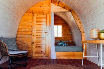 Das Grós der 17 Gästezimmer sind freistehende Einraum-Holzbungalows (ca. 12 m2), die an ,Hobbit-Hütten‘ erinnern, und die zweckmäßig mit Doppelbett (140 x 200 cm), Duschbad/WC, kleinem Wohnbereich — wahlweise ohne oder mit Klimagerät —, Ventilator, WLAN und möblierter Terrasse mit Meerblick ausgestattet sind. Alternativ dazu gibt es 2 komfortablere Superior-Doppelzimmer (ca. 15 m2) auf einer tieferen Ebene zwischen Pool und Sauna, die über eine gemeinschaftliche Panoramaterrasse und zusätzlich Satelliten-TV verfügen.